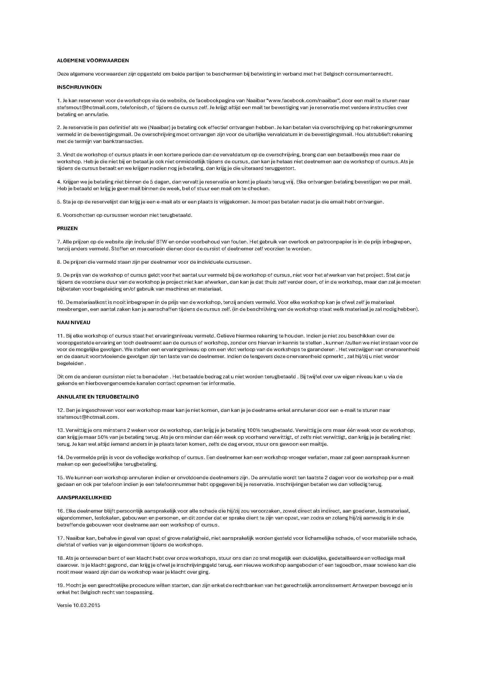 Algemene voorwaarden voor ;